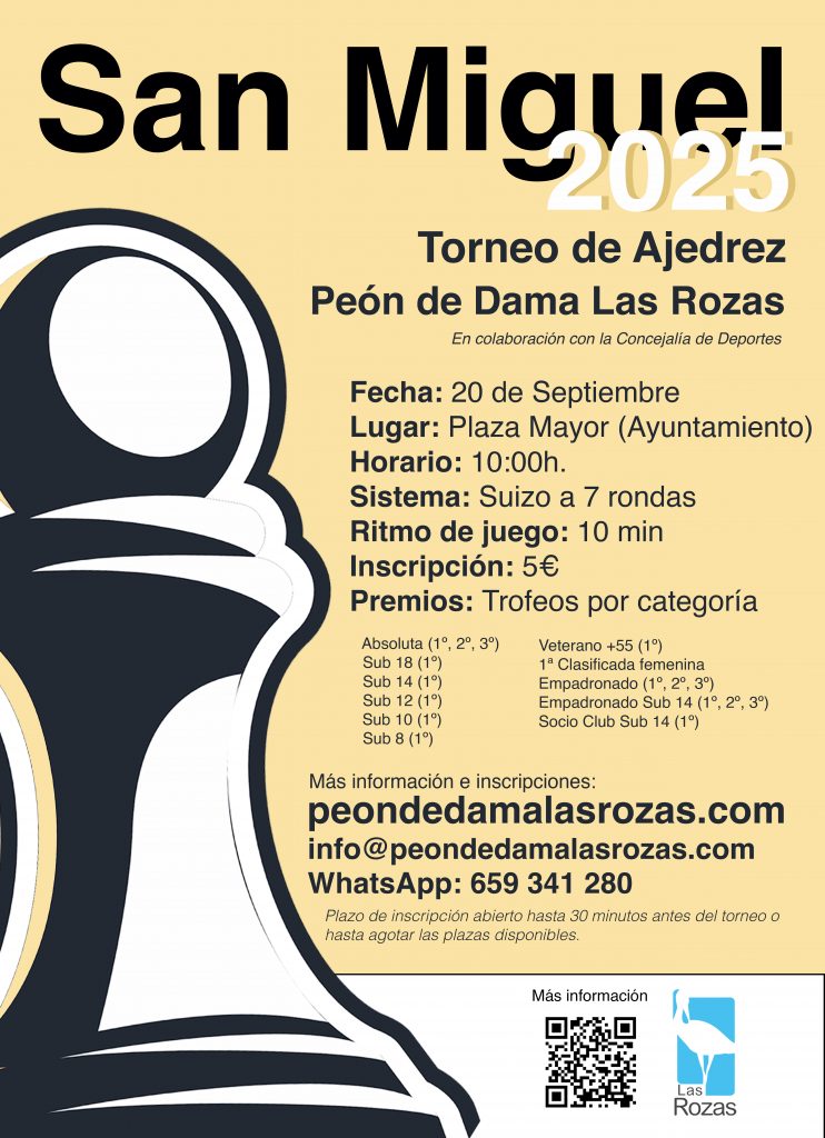 Tras el éxito de las ultimas tres ediciones, lanzamos de nuevo el torneo por las fiestas de San Miguel en colaboración con la Concejalía de Deportes del Ayuntamiento de Las Rozas y que se celebrará el sábado día 20 de septiembre en la Plaza Mayor de las Rozas (Ayuntamiento).